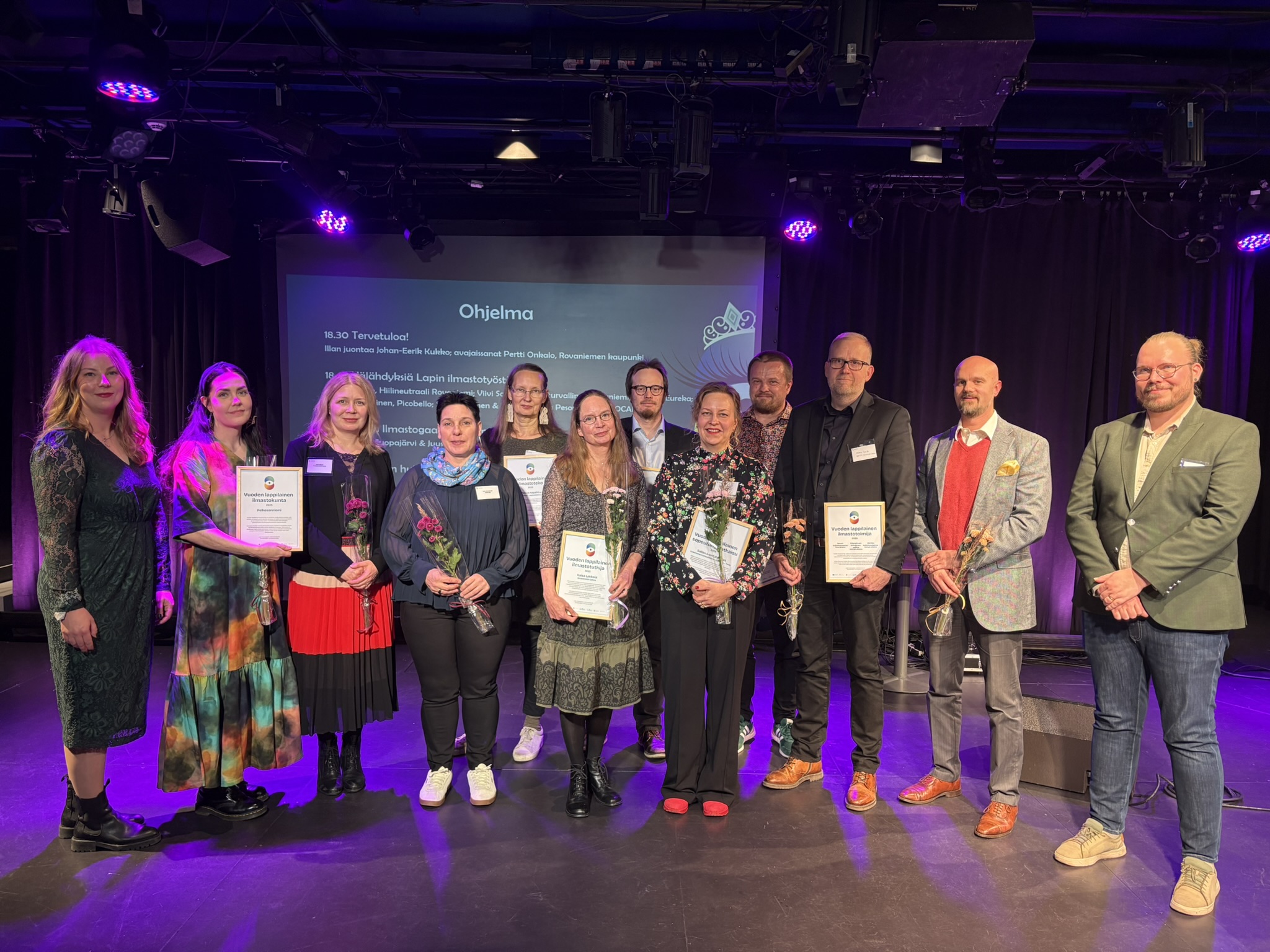 Ensimmäistä kertaa järjestetyssä Lapin ilmastogaalassa palkittiin ilmastotutkimuksessa ja ilmastoteoissa ansioituneita lappilaisia. Tapahtuma oli osa 5.-6.11.2025 järjestettyä Lapin ilmastoseminaaria, joka kokosi yhteen ilmastonmuutoksen parissa työskenteleviä ja siitä kiinnostuneita ammattilaisia, tutkijoita ja kehittäjiä koko maakunnan alueelta.