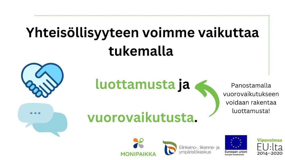 Lisävinkkejä yhteisöllisyyden kehittämiseen kuulet Monipaikan Yhteisöllisyys ja menestyvä etätiimi Youtube -tallenteelta, jonka pääset katsomaan tästä linkistä.