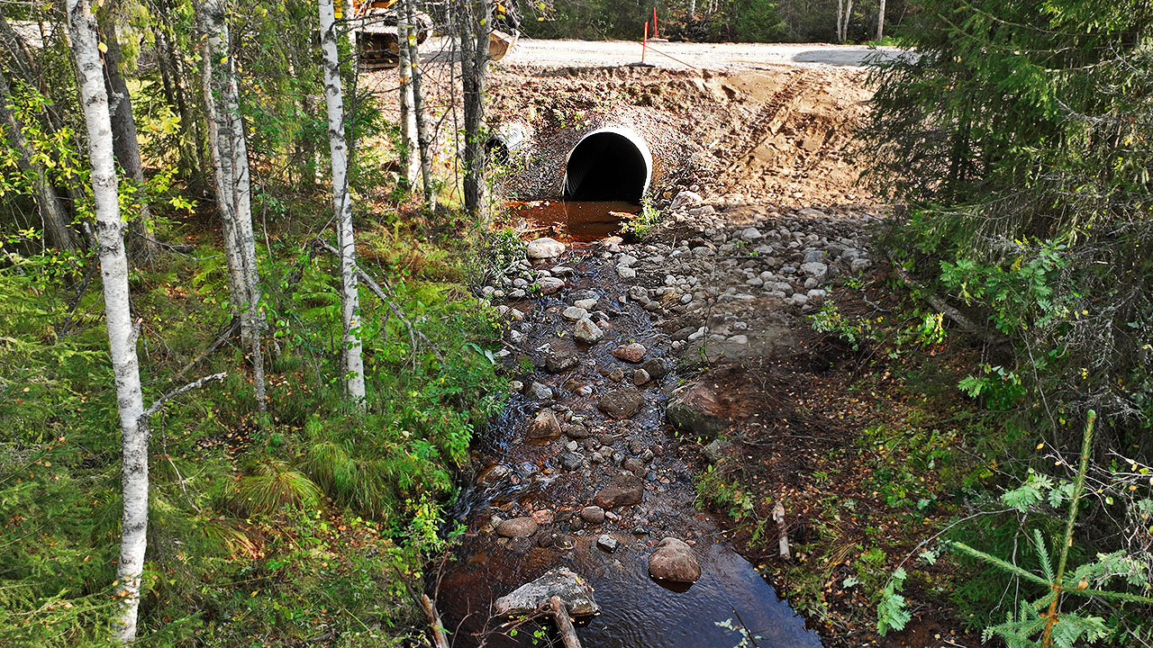Kohteelta poistettiin vaelluseste vaihtamalla rummut uusiin. Myös purouomaa muokattiin rummun alapuolelta paremmaksi vesieliöiden kulkureitiksi. Kuva: Sihveri Ervasti