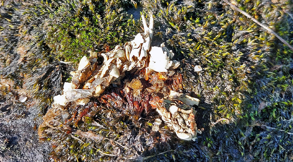 Ravun ja kalan jäännöksiä saukon ulosteessa. Kuva: Sihveri Ervasti