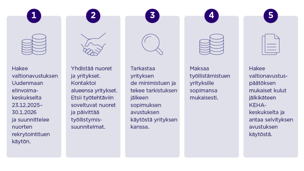 Uudenmaan elinvoimakeskus myöntää työvoimaviranomaisille valtionavustusta nuorten työllistämi ...