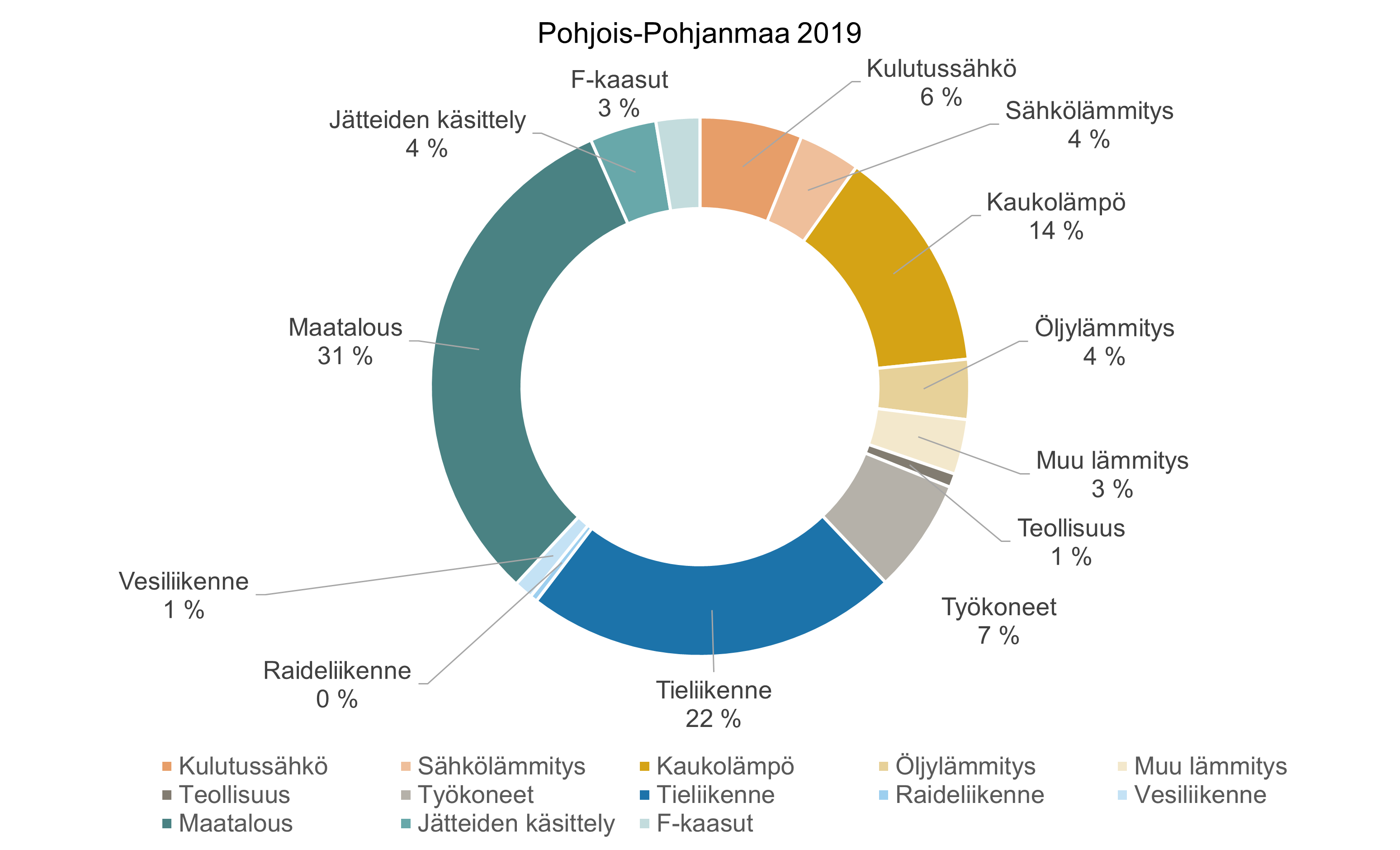 Pohjois-Pohjanmaan kasvihuonekaasupäästöt vuonna 2019